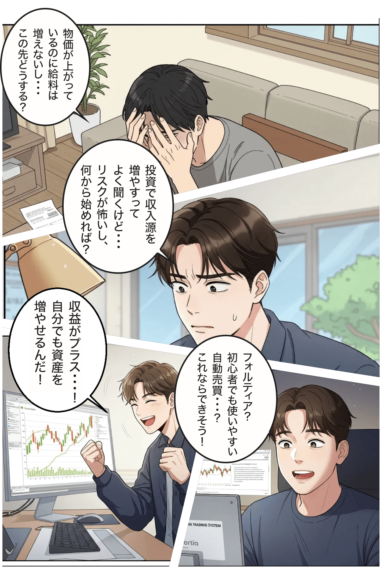 フォルティアトレードシステムを作ったのは、たった1,000円でもいい——それが積み重なれば、月に2万、3万になり、「諦める」生活から「選べる」生活へ変わる。そんな未来を届けたかったから。