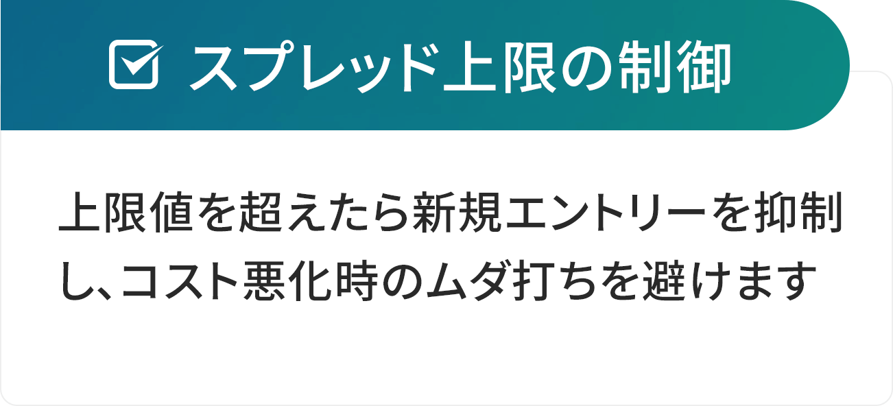 上限値を設定し、広がったら新規エントリーを止めます。スプレッドが広い時は?